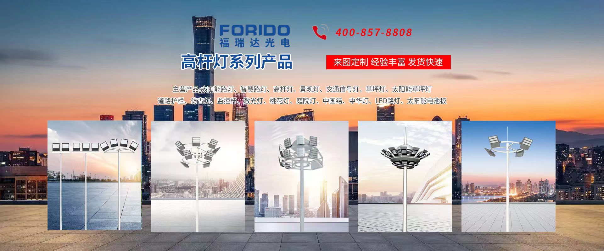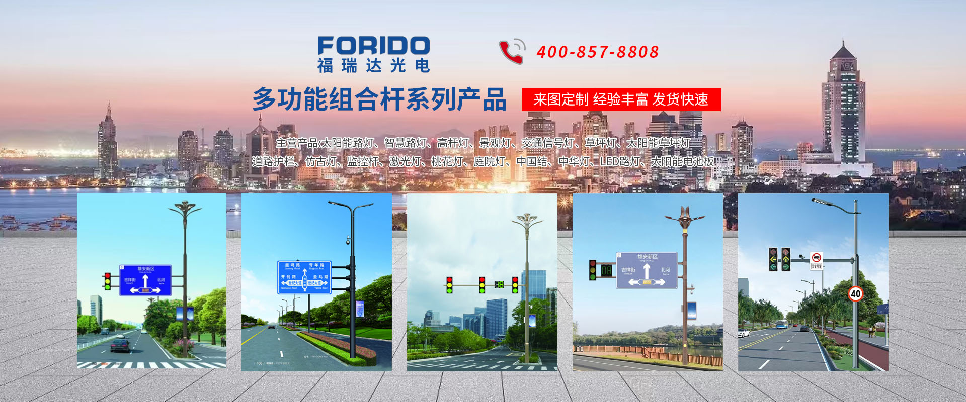 揚州福瑞達光電科技有限公司位于淮左名都歷史文化名城、中國路燈制造基地揚州市北郊菱塘工業(yè)園,公司占地面積76000平方米,注冊資金10518萬元,擁有高級技術嫻熟的員工280多人,擁有大型折彎機、激光切割、數(shù)控注塑機、壓鑄機、自動埋弧焊、氣焊、彩色粉末靜電噴塑等大型自動化設備,我公司是一家集設計、研發(fā)、生產、銷售、施工安裝服務為一體的戶外交通照明產品制造商,主要生產智慧路燈、太陽能路燈、LED路燈、高桿燈、景觀燈、交通信號燈、交通標志牌、通信鐵塔、路跨鋼結構、公交站臺、太陽能光伏組件、景點亮化、樓宇亮化工程的設計施工等。公司秉承開拓創(chuàng)新、銳意進取、精誠服務的企業(yè)精神,堅持以“誠信為本、技術為先、服務是金”的合作理念,我們憑借先進的制造工藝、優(yōu)質的產品質量、合理的市場價格和完善的售后服務贏得了廣闊的市場和客戶的信賴。  我公司已通過ISO9001質量體系認證、ISO14001環(huán)境管理體認證,CQC產品認證,中國節(jié)能產品認證,通過“CCC”強制性產品認證,具有市政總承包,照明,交安,設計等資質···